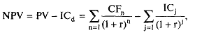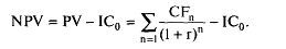 3. Текущая стоимость затрат (IС0) сравнивается с текущей стоимостью доходов (PV). Разность между ними составляет чистый приведенный эффект (NPV):