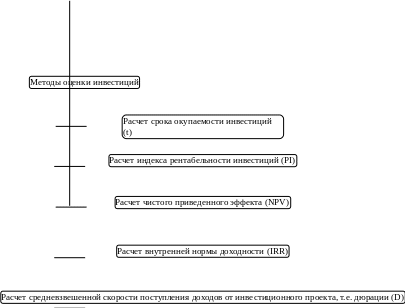 Если имеется несколько альтернативных проектов с одинаковыми значениями NPV и IRR, то при выборе окончательного варианта инвестирования учитывается длительность инвестиций - дюрация (duration).