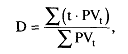 Дюрация (D) - это средневзвешенный срок поступления денежных доходов от инвестиционных проектов. Она рассчитывается следующим образом: приведенная стоимость каждого платежа умножается на время, через которое этот платеж должен поступить, после чего все полученные значения суммируются и делятся на сумму приведенной стоимости всех платежей: