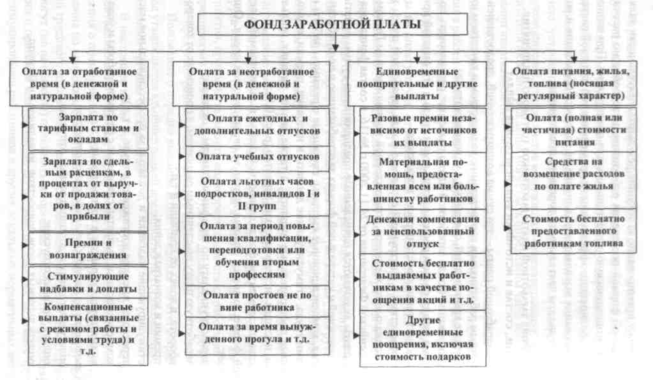 В состав фонда заработной платы с 1996 года включены выплаты работодателя на питание, жилье и топливо. Ранее средства на эти цели относились к социальным выплатам и льготам. В то же время из состава фонда заработной платы исключены и переведены в состав выплат социального характера:
