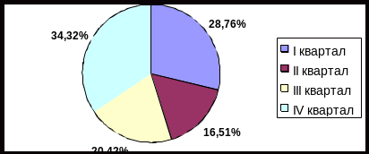 Наибольший удельный вес по продажам занимает первые и четвертый квартал и это закономерно: в данные периоды времени возрастает спрос на мебель, а в летнее время спрос сокращается.
