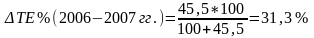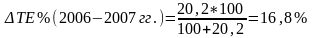 ΔТЕТэ (2006-2007гг.) = 28,2 – 23,5 = +4,7;