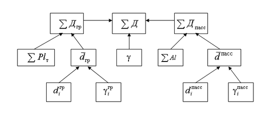 Схема причинно-следственной зависимости показателей доходов от перевозки грузов и пассажиров представлена на рис. 5.2 и анализируется по следующей формуле: