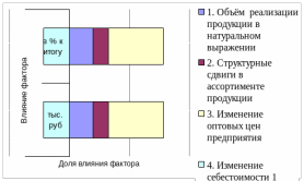 Рис. 4. Влияние факторов на изменение прибыли от реализации продукции предприятия по сравнению с предыдущим годом