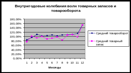 5.2 Расчет внутригодовых колебаний волн товарных запасов и товарооборота