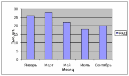 Графически ряды динамики изображаются в основном либо линейными, либо столбиковыми диаграммами (рис. 1.1). Но в любом случае по оси абсцисс откладываются показатели времени, а по оси ординат – уровни ряда (либо базисные темпы роста).
