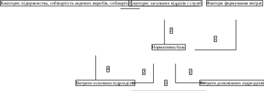 Для кращого сприйняття схема істотно спрощена, на ній не показано взаємозв'язків між підрозділами в процесі розроблення плану й особливо між основними і допоміжними структурними одиницями. Одним із проявів таких зв'язків є метод формування внутрішніх витрат, а саме напівфабрикатний і безнапівфабрикатний.