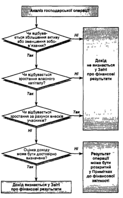 Положенням (стандартом) бухгалтерського обліку 15 "Дохід" визначено критерії визнання доходу для трьох типів операцій: реалізації продукції (товарів), надання послуг і використання активів підприємства, які приносять відсотки, роялті та дивіденди іншими сторонами (рисунок 1).