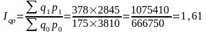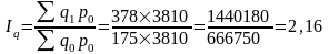Як видно з наведеної формули агрегатного індексу, головною умовою її побудови виступає наявність у чисельнику та знаменнику дробу порівняльних цін, що дозволяє елімінувати вплив цього фактора на фізичний обсяг продукції. Аналогічно розраховується індекс виконання плану фізичного обсягу продукції, для цього в чисельнику враховуються фактичний випуск окремих видів продукції q1, а в знаменнику - плановий qn.