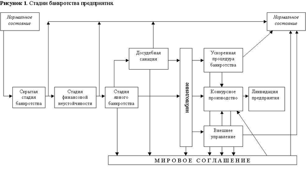 Среди мер, применяемых для финансового оздоровления неплатежеспособного предприятия Закон о банкротстве выделяет реорганизационные процедуры, к которым относит санацию и внешнее управление имуществом должника. Эти меры применяются к должнику по решению и под контролем арбитражного суда. Кроме того, должник может заключить с кредиторами мировое соглашение на любом этапе производства по делу о несостоятельности (банкротстве).