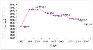 Переход к рыночной экономике неизбежно привел к большим переменам в использовании трудовых ресурсов. С перестройкой хозяйственной жизни в стране проявилось много факторов, влияющих на рынок рабочей силы. Свертывание деятельности центральных ведомств и отраслевых министерств, разрыв вертикальных и горизонтальных экономических связей, установленных в условиях командно-административной системы без учета интересов территорий и трудовых коллективов, резкое ухудшение социально-экономического положения и обострение межреспубликанского (в пределах СНГ) движения населения негативно сказалось на эффективности использования накопленного производственного потенциала, сбалансированном обеспечении трудоспособного населения рабочими местами, способствовало возникновению локальных очагов безработицы. Результатом этого стал рост безработицы с 3,9млн. чел. в 1992г. до 7 млн. чел. в 2000г.