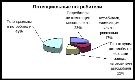 Но эта сегментация является не полной, т.к. многие потенциальные потребители приобрели автомобильные чехлы для своих автомобилей при их покупке и не желают их менять, либо те автомобилисты, которые считают, что чехлы для салона автомобиля – это излишняя роскошь, без которой можно обойтись. Также не стоит включать в число наших потенциальных клиентов тех, кто купил автомобиль сразу же с чехлами завода-изготовителя (более наглядно это можно представить на рис. 1 и в табл. 2).