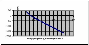 Из рисунка 4.1 видно, что чистый приведенный доход равен 0 при коэффициенте дисконтирования 9 %. Это доказывает, что нельзя использовать банковский кредит как источник финансирования инвестиционного проекта «Фобос».