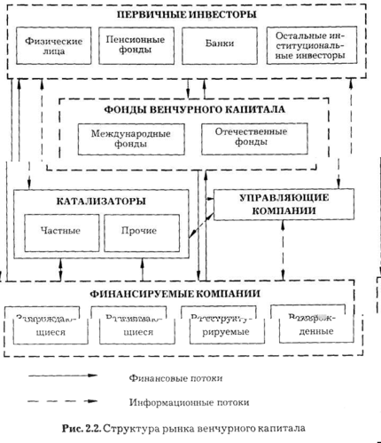 В рамках венчурного бизнеса действуют два основных вида хозяйствующих субъектов — независимые малые инновационные фирмы и предоставляющие им капитал финансовые учреждения.