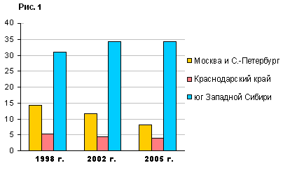 Из данных таблицы 1 видно, что сокращение масштабов миграции в России сопровождается изменением ее структуры. Удельный вес мигрантов из стран СНГ и Балтии в общем числе прибывших снизился с 26,7% в 1995 году до 8,1% в 2005 году, среди выбывших - с 7,9% в 1995 году до 2,5% в 2005 году, миграционный прирост - соответственно с 914,6 тысячи человек до 124,3 тысячи. Одновременно уменьшились миграционные потоки из России в эти страны.