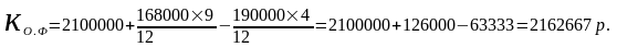 В течении года 1 апреля 2005 года было вновь введено основных фондов на сумму 168000руб., следовательно Сввод = 168000руб., эти О.Ф. числятся на балансе с 1 апреля, т.е. n' = 9 месяцев. И в то же время 7 августа 2005 года было выведено О.Ф. на сумму 190000руб. и с 1 сентября они не числятся на балансе, т.е. n'' = 4 месяца, отсюда:
