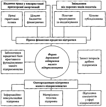 Надання прямої фінансово-кредитної допомоги малим підприємницьким структурам здійснюється здебільшого у формах гарантованих позик, цільового бюджетного фінансування, пільгового кредитування, надання пільг в оподаткуванні, у тому числі і звільнення від деяких видів податків, цільового субсидіювання тощо. У різних країнах мають місце різноманітні підходи щодо підтримки малого бізнесу. В Японії, наприклад, держава надає перевагу політиці пільгового кредитування. Основним критерієм надання державної допомоги малим підприємницьким структурам є спроможність їхнього існування в ринковому середовищі. Пільгові кредити надаються на основі ретельних розрахунків, які доводять доцільність їх надання та можливість їх повернення у майбутньому.