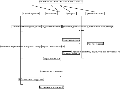 Під методами державного регулювання економіки треба розуміти способи впливу держави через законодавчі і виконавчі органи на сферу підприємництва, інфраструктуру ринку, некомерційний сектор економіки з метою створення або забезпечення умов їхньої діяльності відповідно до національної економічної політики. Схема класифікації цих методів показана на рисунку 1.1. [11]