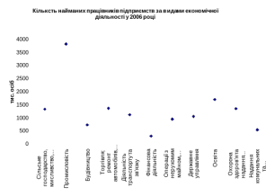 Як видно з рис. 2.1. перелічені галузі з високою потребою у працівниках і до цього часу займали їх найбільше. Розподіл працівників за галузями економічної діяльності нерівномірний і добре ілюструє важливість галузі в економіці нашої країни.