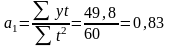 =0,83 (даний параметр співпадає з значенням параметра за даними попереднього вирівнювання ), він свідчить про те, що в середньому щороку затрати праці змінювалися на дану величину.