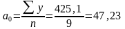 Параметри рівняння за спрощеним методом розрахунків знайдемо на основі розв’язання системи рівнянь: