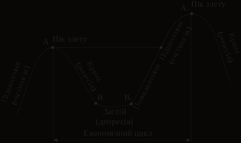 Рис.1. Фази економічного циклу в їхній послідовності та взаємозв’язку