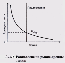 Если величина арендной платы выше уровня равновесия, то количество арендаторов, которые в состоянии заплатить ее, уменьшается. Спрос на землю падает, что вызывает уменьшение арендной платы до равновесного уровня. Если арендная плата отклоняется от точки равновесия вниз, то число желающих арендовать землю превышает ее предложение, обостряется конкуренция между арендаторами за участки. Это вызывает увеличение арендной платы до ее равновесного состояния.