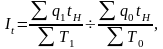 Так как единицы измерения трудоемкости для сравниваемых периодов фиксированы, то динамика производительности труда оценивается достаточно точно. В тех случаях, когда в обоих сравниваемых периодах производится продукция одинакового состава, используют в качестве весов индекса величину трудоемкости производства единицы продукции в базисном периоде. Тогда после элементарных преобразований, с учетом, что q0t0=T0, получаем так называемую классическую формулу индекса производительности труда по трудовому методу: