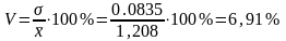 Вывод: Коэффициент вариации составляет 6,91%, что меньшее 33%, следовательно, совокупность считается однородной, а средняя типичной для этой совокупности.