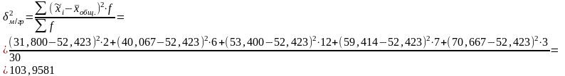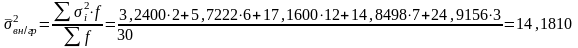 | 5 | 1,320 и более | 5 | 64,800 | (64,800 - 70,667)2 = 34,4217 | (64,800 - 52,423)2 = 153,1901 |