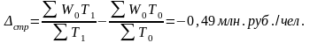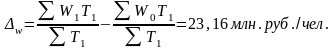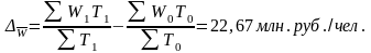 Абсолютное изменение средней производительности труда за счет отдельных факторов.