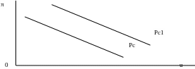 На рисунке 5 показана учитывающая ожидания (приростная) кривая Филлипса (Pc) при естественном уровне безработицы u*.