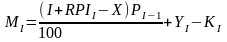 где М, - максимальная средняя цена за терм (условная единица) в текущем году; RPI, - индекс прироста розничных цен; Х- предполагаемый темп снижения издержек транспорта газа (2%); PI-1 - цена газа на регулируемом рынке в предыдущем году за вычетом стоимости добычи; У,- издержки добычи газа в текущем году на один терм; К, - поправочный коэффициент, отражающий возможное снижение ценового ограничения в случае, если реальные цены существенно отклоняются от разрешенного максимума (т. е. издержки отрасли были завышены).
