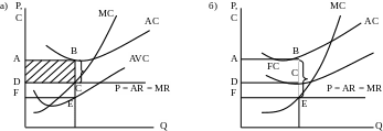 При выпуске Q0 потери, представленные площадью ABEF, будут больше постоянных издержек.