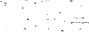 условиях совершенной конкуренции кривая TR представляет собой луч, проведённый через начало координат. Наклон его равен MR = TC/Q (рисунок 1.1, а).
