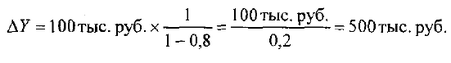 В этом уравнении 100 тыс. руб. — прирост инвестиций dI, а знаменатель дроби (1-0,8) – величина, равная (1-MPC).