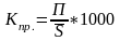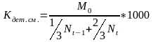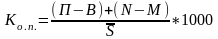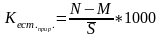 Коэффициент жизненности населения (коэффициент Покровского) Кж(Покр)=(N/M)*1000=Kp/Kсм.