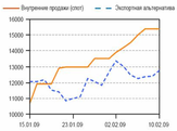 Начиная со второй половины января 2009 года ситуация изменилась – наблюдается резкий рост оптовых цен на нефтепродукты. По данным независимого информационно-аналитического центра «Кортес», с начала 2009 года оптовые цены реализации нефтепродуктов с нефтеперерабатывающих заводов в среднем по России выросли: на дизельное топливо – на 23%; на бензин А-76 – на 37%; на бензин А-92 – на 57%; на бензин А-95 – на 14% [24]. Указанное повышение оптовых цен привело к снижению доходности операций на розничных рынках (розничной маржи). Были установлены признаки нарушения антимонопольного законодательства крупнейшими российскими нефтяными компаниями в январе-феврале 2009 года: