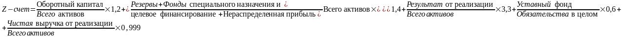 Для оценки степени близости организации к банкротству и ее кредитоспособности широко используется факторная модель известного западного экономиста Альтмана, разработанная с помощью многомерного дискриминантного анализа. В зависимости от значения Z-счета по определенной шкале производится оценка вероятности наступления банкротства в течение 2 лет: