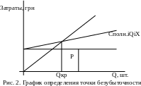 Точку безубыточности проекта следует определить также графически, аналогично рис. 2 (где Qi – количество i-тых изделий).