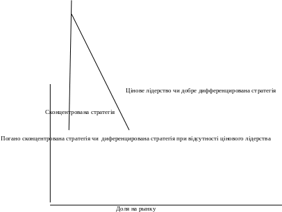 Рис. 3.3 Зв’язок долі на ринку та доходу фірми в загальній стратегічній моделі Портера
