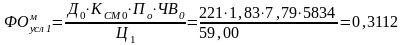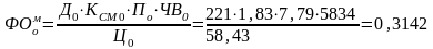 Третий условный показатель фондоотдачи рассчитывается как фактическая фондоотдача при базовой продолжительности рабочей смены и при базовой часовой выработке продукции: