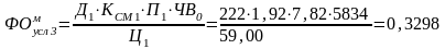 В связи с тем, что продолжительность смены увеличилась на 0,3 ч, фондоотдача технологического оборудования увеличилась на 0,0013 руб./руб. (0,3298 – 0,3298).