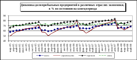 В целом по отрасли связь финансовая ситуация в 2008 году стала ухудшаться. Еще по итогам I квартала наблюдался рост сальдированного финансового результата, хотя и небольшой (немногим более 5%). По итогам января-мая уже был отмечен спад этого показателя (см. таблицу 5). Отрицательная динамика сальдированного финансового результата в отрасли отмечена впервые за несколько лет. В предыдущие годы финансовые показатели в отрасли связь росли быстрее, чем в других отраслях.