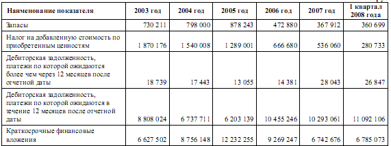 Общая сумма оборотных средств Общества на 31.03.2008 составила 34 628 329 тыс. руб., увеличившись по сравнению с 31.03.2007 на 11 343 473 тыс. руб. (49%), в том числе за счет: