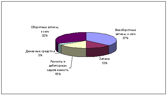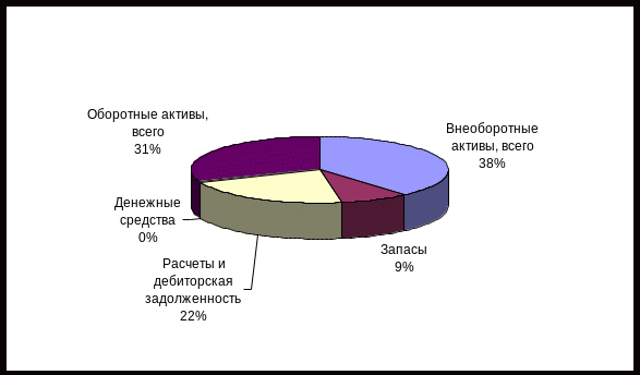 Рисунок 2 . Удельный вес элементов имущества в общей стоимости имущества но состоянию на 31.12.2008г.