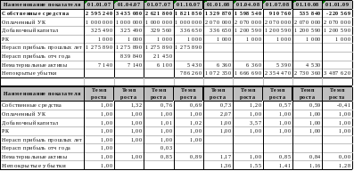 Величина чистых активов компании(табл.№2) в течении 2007 года превышала размер уставного капитала, но в 2008 году наблюдалось обратная ситуация: чистые активы не полностью покрывали уставный капитал.
