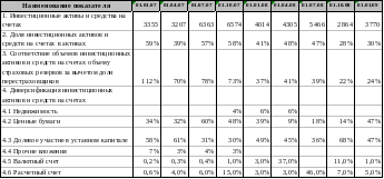 Изменилась и структура активов: уменьшился удельный вес инвестиций с 58 % до 30 %, то есть почти в два раза; увеличился удельный вес дебиторской задолженности с 26 % до 49 %; удельный вес других активов остался примерно на том же уровне.
