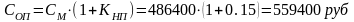 Цнт = Снт + Нприб = Снт*1.2=445710,65*1.2=534852,8 руб,