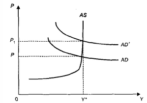 Рис. 1.2. Рост уровня цен под влиянием увеличения совокупного спроса при полной занятости